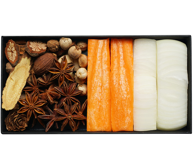 Carefully selected Chinese herbs (free from heavy metals), along with fresh vegetables, are simmered with fermented rice wine and broad bean paste to release layers of sweetness and complexity.